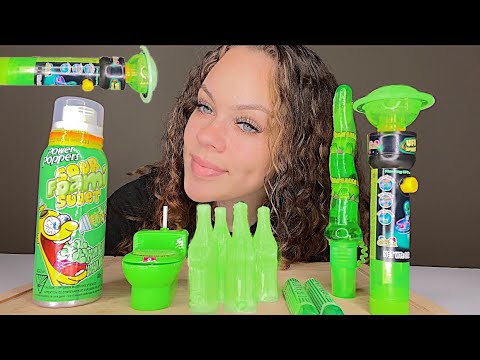 Asmr Green Food Sour Foam Candy Snake Spray Ufo Spinner Splash Potty Crayon Candy Mukbang Youtube